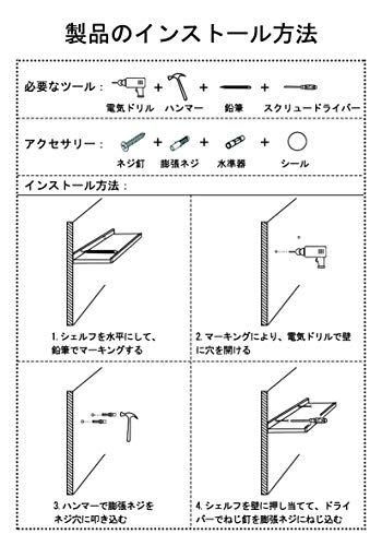 【高い耐荷重】:15KG。こちらの壁棚はネジとアンカーで壁に固定するので、安定性が高いです。勿論インストール時電気ドリルが必須です。吸音ボード、土壁、しっくいなどのもろい壁は耐荷重に弱いからご遠慮