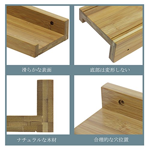 【良い素材】:こちらのウォールシェルフの材質は孟宗竹です。竹は抗菌、防水防カビ、鮮度保持能力に優れた素材として知られています。木と違って強靱さが持っていって、ものを置く時の音も木製やプラスチック製に違います。