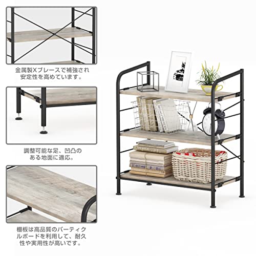 NEKOU オープンラック オープンシェルフ 木製 収納ラック 3段 高さ調節可能 キッチンラック 組立簡単 可動棚 デ