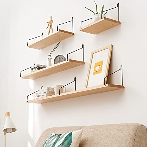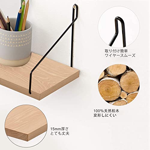 ウォールシェルフ 天然木 壁掛け棚 取付簡単 本棚 DIY 木製 飾り棚 シンプル ワイヤー付け 収納便利 (ナチュラ