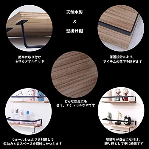 【製品仕様&組み立てと取り外しが簡単】サイズ:長さ41奥幅15.6高さ7cm 2個セット パッケージリスト:壁掛け棚x2、長いネジx4、短いネジx4、膨張ピンx4、取り付け説明書x1。このウォールシェルフは二重吊り穴の設計を採用しており、ただ電気ドリルを使用して壁に2つの穴を開けて取り付けます,壁へのダメージが少ない。それと、タオル掛けは壁に取り付けられたフローティングシェルフに固定されていません。棚に取り付けたり、壁に取り付けたりすることで活用できます。