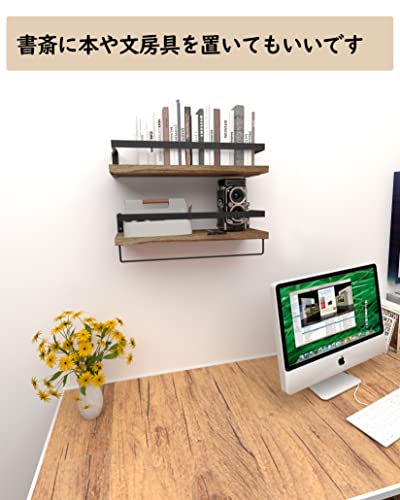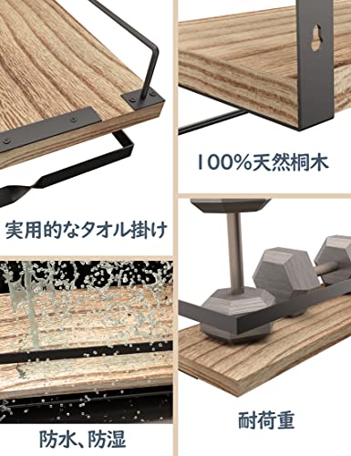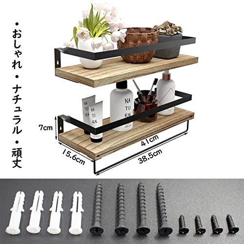 【製品仕様&組み立てと取り外しが簡単】サイズ:長さ41奥幅15.6高さ7cm 2個セット パッケージリスト:壁掛け棚x2、長いネジx4、短いネジx4、膨張ピンx4、取り付け説明書x1。このウォールシェルフは二重吊り穴の設計を採用しており、ただ電気ドリルを使用して壁に2つの穴を開けて取り付けます,壁へのダメージが少ない。それと、タオル掛けは壁に取り付けられたフローティングシェルフに固定されていません。棚に取り付けたり、壁に取り付けたりすることで活用できます。