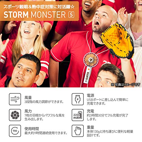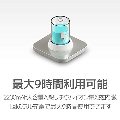パワフルな7枚の羽根。持ち運びに便利。最大9時間利用可能。