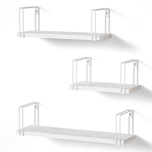 SRIWATANA ウォールシェルフ ウォールラック 壁掛け棚 木製ラック 3点セット 収納棚 飾り棚 壁面収納 (ホワイト)