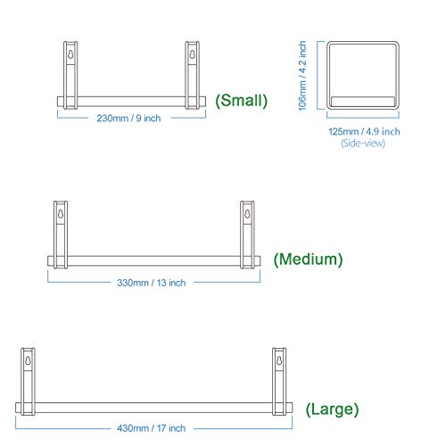 【製品仕様】異なったサイズのウォールシェルフです。Lサイズ:長さ43奥幅12.5高さ10.6cm Mサイズ:長さ33奥幅12.5高さ10.6cm Sサイズ:長さ23奥幅12.5高さ10.6cm。耐荷重:18kg