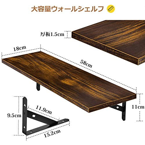 HASONA ウォールシェルフ 壁掛け棚 (防水 防カビ 壁 棚 ラック 幅58cm×奥行18cm) 防虫 滑らか 2個セット おしゃれ