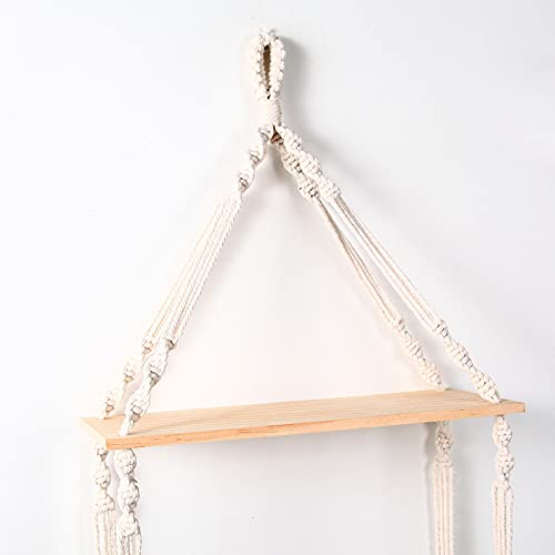 コットンのロープで吊るされたスイングシェルフは、ユニークで素朴な魅力を持っています。