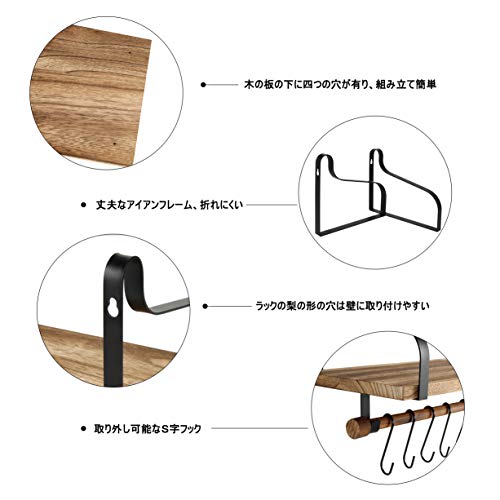 良い壁面収納:壁に設置された収納棚は、物を置くスーペスを増やして、省スペースです。また、付属している八つのS字フックを使っ