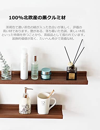 ☆優れた素材☆ 黒クルミ木材で作られており、ナチュラルな素材感も魅力です。耐荷重は10-20kg。天然の木材を厳選し、とても硬く丈夫で、長く使える素材です。環境にやさしく健康的です。吸音ボード、土壁、しっくいなどのもろい壁は耐荷重に弱いからご遠慮ください。バッフル付いて収納物の落下防止もできます。