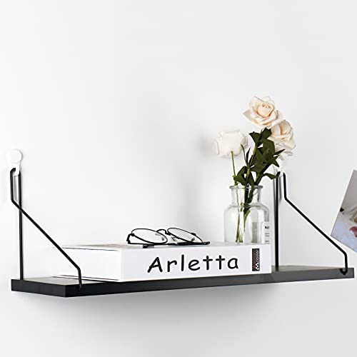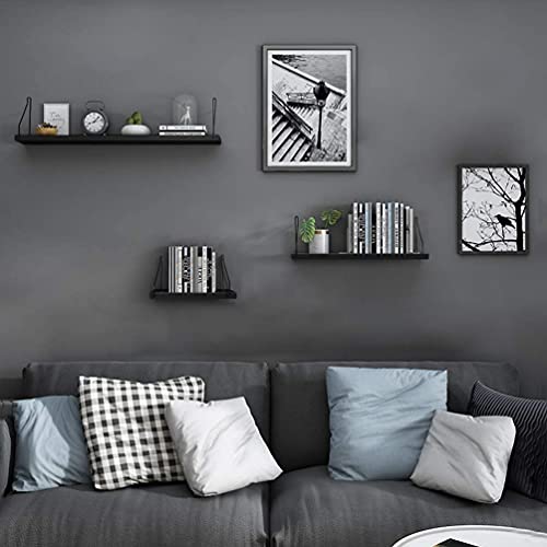 YOYAI 壁掛け棚 ウォールシェルフ 飾り棚 木製 DIY おしゃれ 壁面収納 穴あけ不要 簡単取り付け (ブラック, 40c