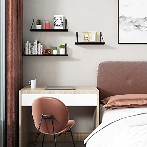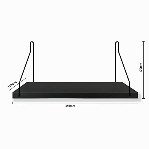 ウォールシェルフ 天然木 壁掛け棚 取付簡単 本棚 DIY 木製 飾り棚 シンプル ワイヤー付け 収納便利 (ブラック,