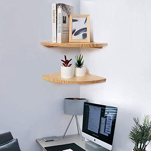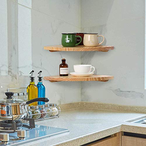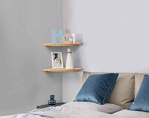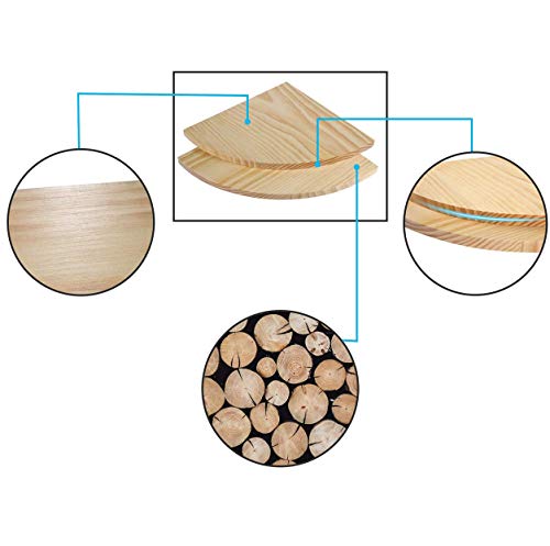 【天然木製】三角コーナーウォールラック,コーナー壁 棚のファッションと耐用性:このウォールシェルフの仕様はサイズ:幅300mm×厚さ15mm×奥行300mm、ウォールシェルフ木目が綺麗な天然パイン材製で、インテリアとして飾ってみるのも素敵です。2個セットなので、格段に収納力もアップ。