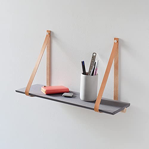 NOSERU 2 with leather strap (Brown)/ ハンギングシェルフ ウォールシェルフ 飾り棚 日本製