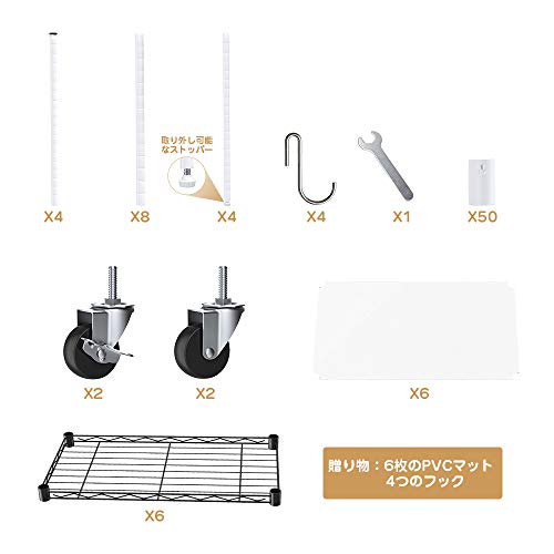| 商品名 | NATRKE メタルラック 6段 ホワイト スチールラック スチールシェルフ ワイヤーラック 大容量 防錆 傷つきにくい |