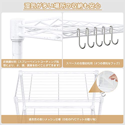 NATRKE メタルラック 6段 ホワイト スチールラック スチールシェルフ ワイヤーラック 大容量 防錆 傷つきにくい