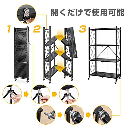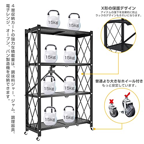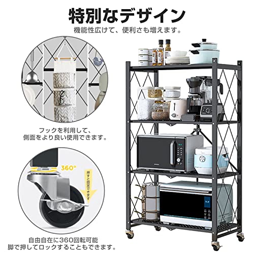 NEKOU メタルラック 折りたたみラック 4段 大容量 収納ラック キャスター付き キッチンラック レンジラック 防