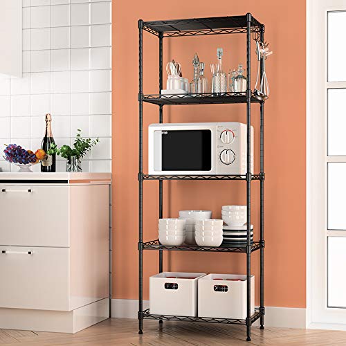 スチールラック 収納 棚 ラック メタル スチール シェルフ キッチン収納 ワイヤーラック 55×30×160cm ブラック
