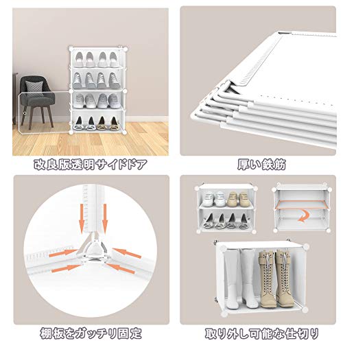 「おしゃれな仕様・超大容量」色が清潔感のあるホワイトで、お家のどこに設置しても違和感なく合わせやすいです。内部構造には、ニーズに応じて自由に調整することができ、大容量を持ち、たくさん靴を収納できるし、非常に便利で実用的に組み合わせることができます。