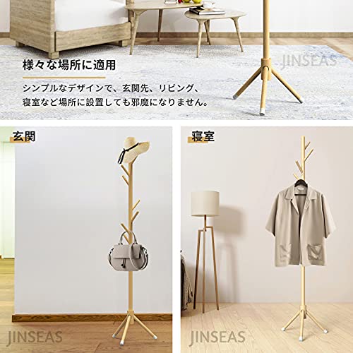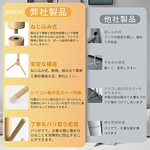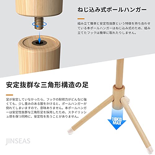 【天然木の質感】 天然の木を加工して出来たポールハンガーですので、木の温もりを感じます、表面は手触り良く滑らかな仕上がりで、丈夫である