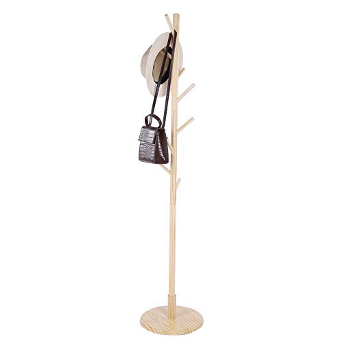 布ハンガーツリー、固体耐久性組み立て木製コートハットスタンドツリージャケット布垂直ハンガーラック8フ