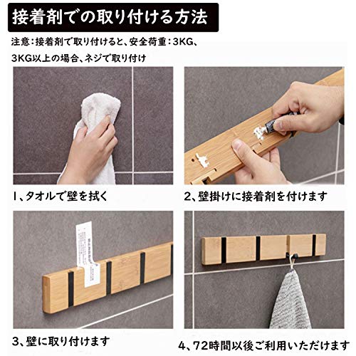 【付属品とサイズ】セット内容:接着剤、ビス、アンカービス。材質:竹集成材、フック: