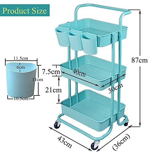 Lontenrea 多機能 3層ローリングカート オフィス キッチン 収納カート バスルーム リビングルーム 収納ラック + 3