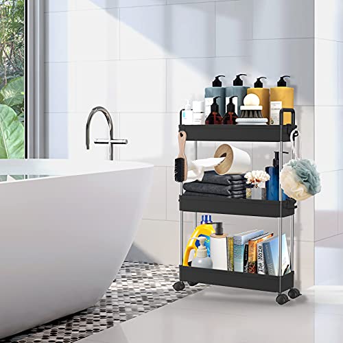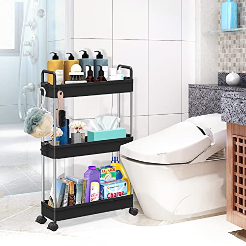 SOLEJAZZ キッチンワゴン 3段 収納カート 隙間収納 移動式 取っ手付き キッチン バスルーム 洗濯室 狭い場所用