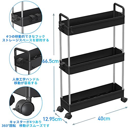 【移動便利な3段収納カート】奥行5.1インチ(約13cm)で、自宅のどんな狭い場所でも利用できます。台所、浴室、洗濯室、オフィスや車庫などのシーンにも、洗濯機と乾燥機の間にも置いてもいいです。