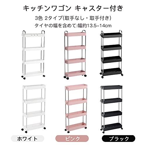【商品仕様】使用サイズ:約幅13×奥行40×高さ85cm 500mlのペットボトルの収納:1段につき、7~10本収納可能です。素材はプラスチックで、軽くて移動しやすいのがメリットですが、安定性に欠けるのがデメリットなので、安定性を高めるために洗濯洗剤などの重いものを下の層に置くことをおすすめします。 耐荷重:約10kg ニーズによりバスケットを減らして、段数を自由に決めて、一段~四段まで使えます。 色は:ブラック、ホワイト、ピンクがあり、好みに応じて色を選ぶことができます。 素材:ステンレススチール+ABS。高級な材質は採用なので、防錆性、耐久性、安定性が高いです。