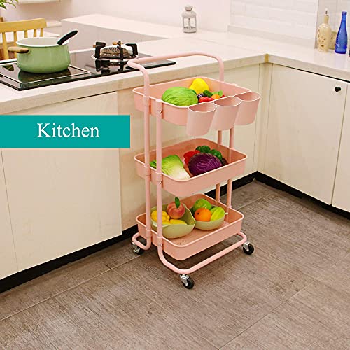 Lontenrea 多機能 3層ローリングカート オフィス キッチン 収納カート バスルーム リビングルーム 収納ラック + 3