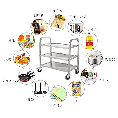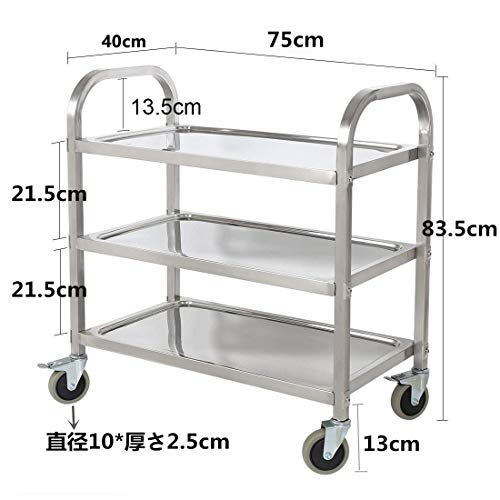 ?【耐荷重】:サイズ:754083.5CM 3段階の高品質ステンレス製のキッチンカートです。毎段階の耐荷重は50kg 、三段階の耐荷重は150kg、大容量のキッチンカートです。
