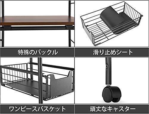 「高品質素材」:優れた炭素鋼素材を採用しており、高い耐久性、抜群の安定性と防錆性能を誇ります。上質な木製のボードを採用していますので、電子レンジなど重みのある物でも安心して収納できます。