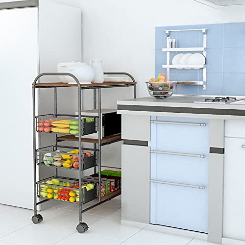 Supark キッチンワゴン 収納ラック 調味料ワゴン 引き出し キャスター付き スリム レンジ台 食器棚 キチンラッ
