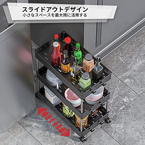 【柔軟な3段収納カート】-3段スリム収納カートは22cmのデザインで、ご家庭の狭い場所でも収納できます。 クローゼット、キッチン、バスルーム、ガレージ、ランドリールーム、オフィス、または洗濯機と乾燥機の中間に適しています。