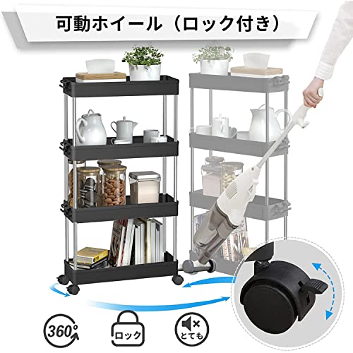 【柔軟な4段収納カート】-4段スリム収納カートは12.5cmのデザインで、ご家庭の狭い場所でも収納できます。 クローゼット、キッチン、バスルーム、ガレージ、ランドリールーム、オフィス、または洗濯機と乾燥機の中間に適しています。