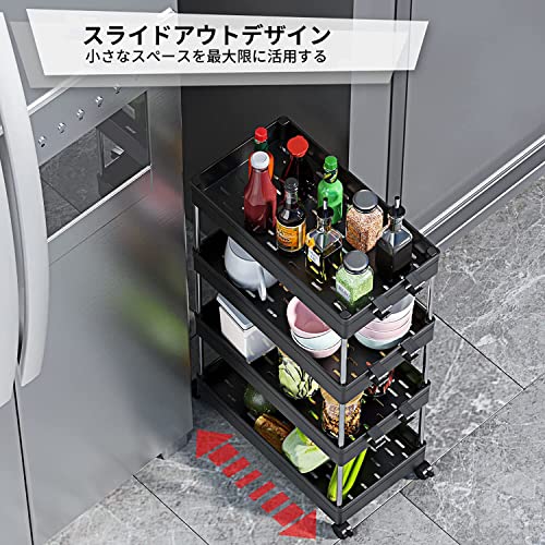 【柔軟な4段収納カート】-4段スリム収納カートは22cmのデザインで、ご家庭の狭い場所でも収納できます。 クローゼット、キッチン、バスルーム、ガレージ、ランドリールーム、オフィス、または洗濯機と乾燥機の中間に適しています。