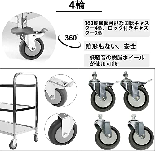 | 商品名 | uyoyous ステンレス ワゴン サービス カート 3段 組立式 業務用 収納 ワゴン キッチンカート ワゴン キャスター |