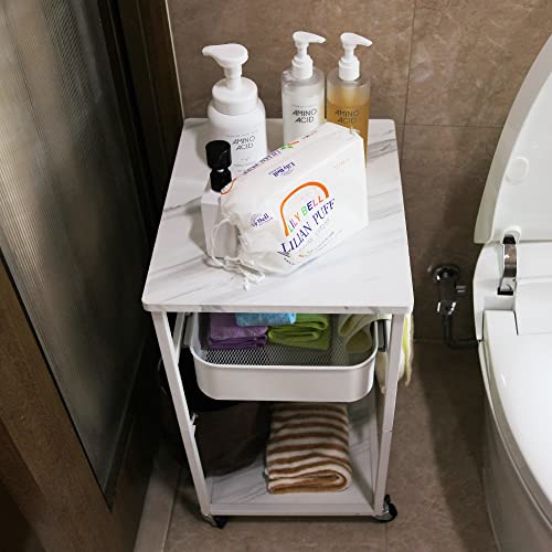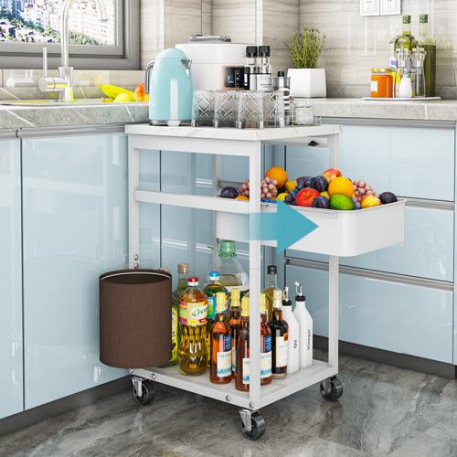 LISUEYNE キッチンワゴン 幅34×奥行40×高さ66cm 引き出し式 キャスター付き 収納かご付き オフィス収納カート ラ