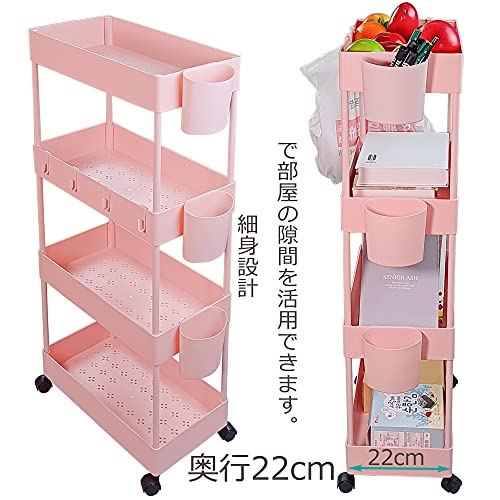 Lontenrea 4段 ローリングカート 多機能 スリム キッチンラックオフィス リビングルーム 台所 隙間収納カート キ