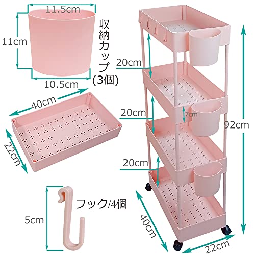 【強い耐荷重 & 大容量】収納ラックのサイズ:幅40×奥行22×高さ92cm。4段収納棚のデザイン、より多くの追加の収納スペースを提供し、棚ごとの負荷は最大3 kgです、総耐荷重(約)12kg。バスケットサイズ:約幅40×奥行22×高さ7cm。バスケットはABS材質、軽量、ご底板は穴付きで通気性がよく、お掃除が簡単で。
