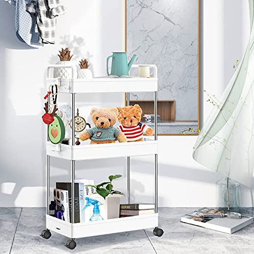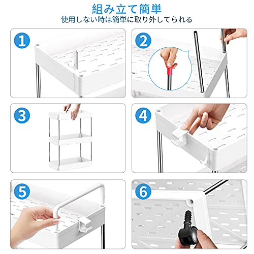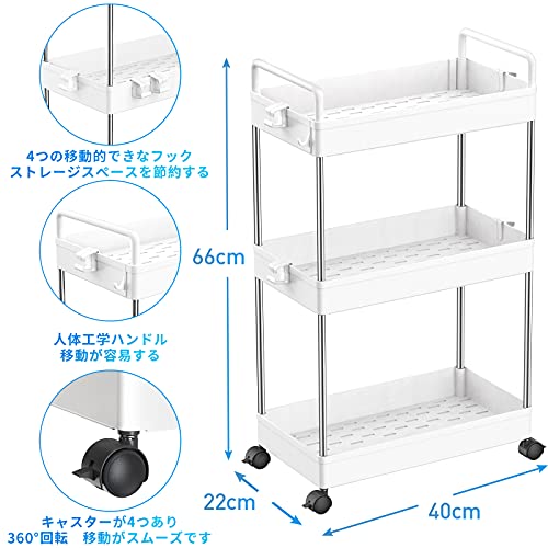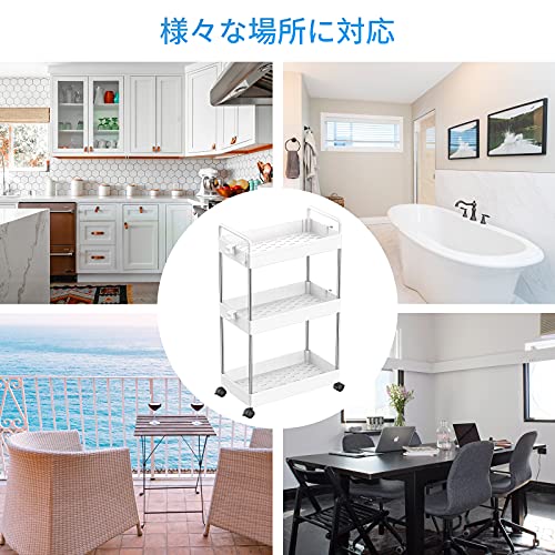 【移動便利な3段収納カート】奥行8.66インチ(約22cm)で、自宅の様々な場所でも利用できます。台所、浴室、洗濯室、オフィスや車庫などのシーンにも、洗濯機と乾燥機の間にも置いてもいいです。