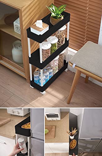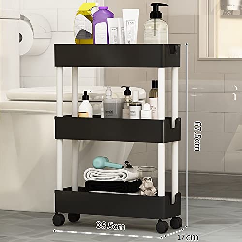 キッチン すき間収納 キャスター付 スライドできる,キッチン収納 (ブラック, 17 * 38.5 *67.5 CM)