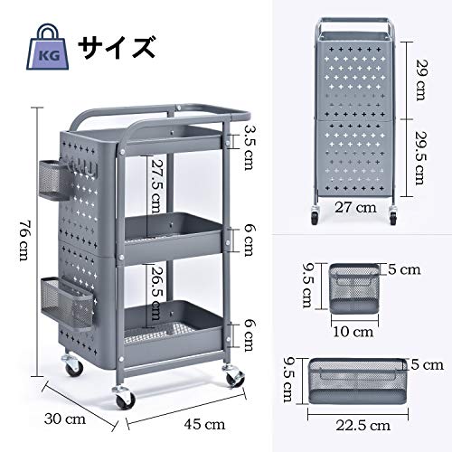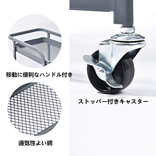 大きな収納量、耐荷重30kg: カゴには水がたまらない網目デザインを採用。通気に優れ、置いた物が落ちません。