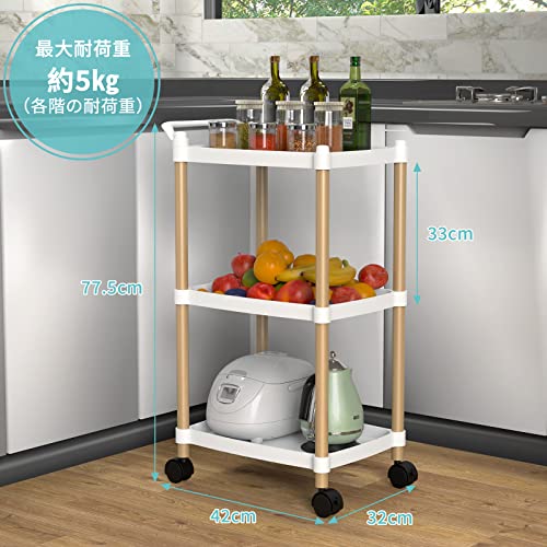 HAROK キッチンワゴン 3段キッチンラック キャスター付きワゴン 収納カート すきま収納 移動式 組立簡単 台所/