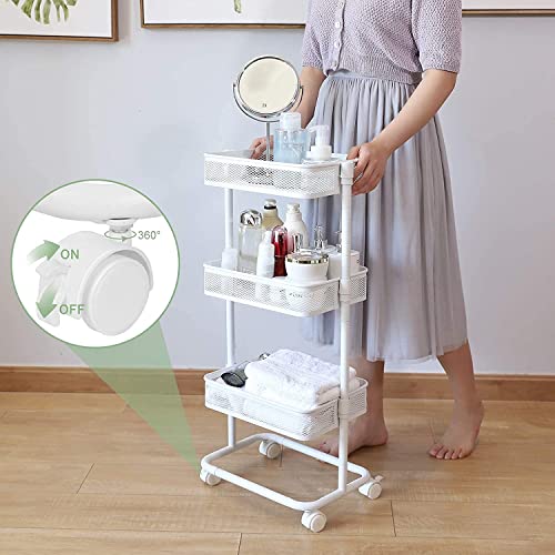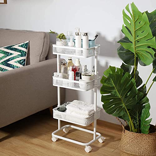 LeHom 高さ調節 キッチンワゴン 軽量 組み立て簡単 ワゴン 収納ラック キャスターワゴン (白)