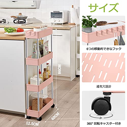 キッチンワゴン キャスター付き 4段 収納カート ローリングラック 幅12.5 x 奥行40 x 高さ86cm おしゃれ 隙間収納