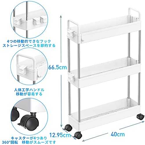 | 商品名 | SOLEJAZZ キッチンワゴン 3段 収納カート 隙間収納 移動式 取っ手付き キッチン バスルーム 洗濯室 狭い場所用 |
