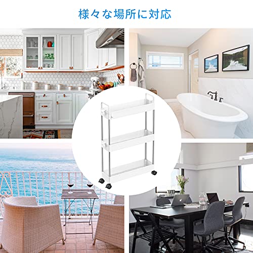 【移動便利な3段収納カート】奥行5.1インチ(約13cm)で、自宅のどんな狭い場所でも利用できます。台所、浴室、洗濯室、オフィスや車庫などのシーンにも、洗濯機と乾燥機の間にも置いてもいいです。