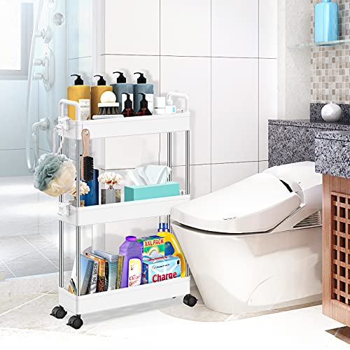 SOLEJAZZ キッチンワゴン 3段 収納カート 隙間収納 移動式 取っ手付き キッチン バスルーム 洗濯室 狭い場所用