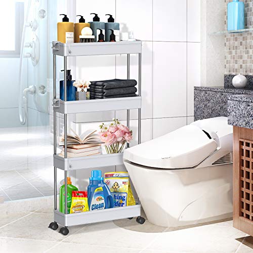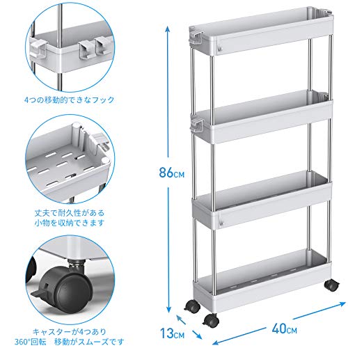【高品質の家庭用収納 ワゴン】高級な材質は採用なので、高い安定性を誇ります。スリムボディーをして、部屋の隙間に自在に配置されています。トイレ収納、ベッドルーム、居間、子供部屋、キッチン、書店、美容室などの使用に最適して、収納力は抜群です。いろんなシーンで大活躍なキッチンワゴンです